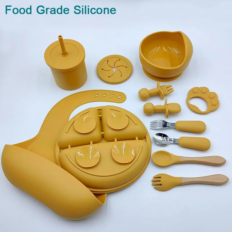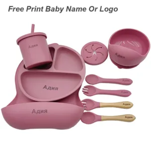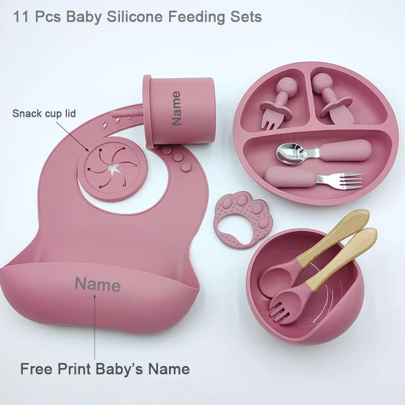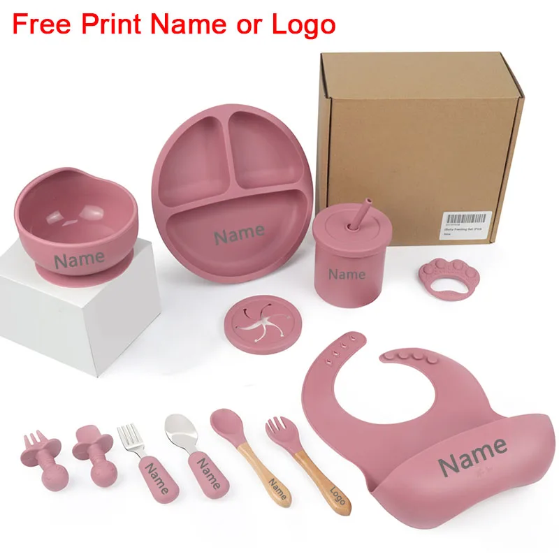 11Pcs Silicone Feeding Sets For Baby Personalized Name Children's Tableware Suction Cup Plates Bowl Feeding Cups Free Shipping
