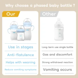 • 4. Anti-inflation function, double inlet vent design.Avoid the baby inhaling too much air and cause flatulence, stomach pain.