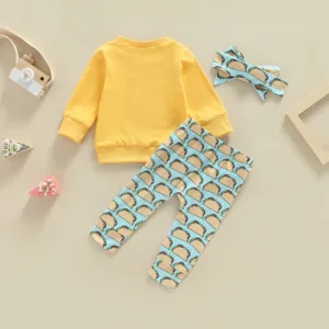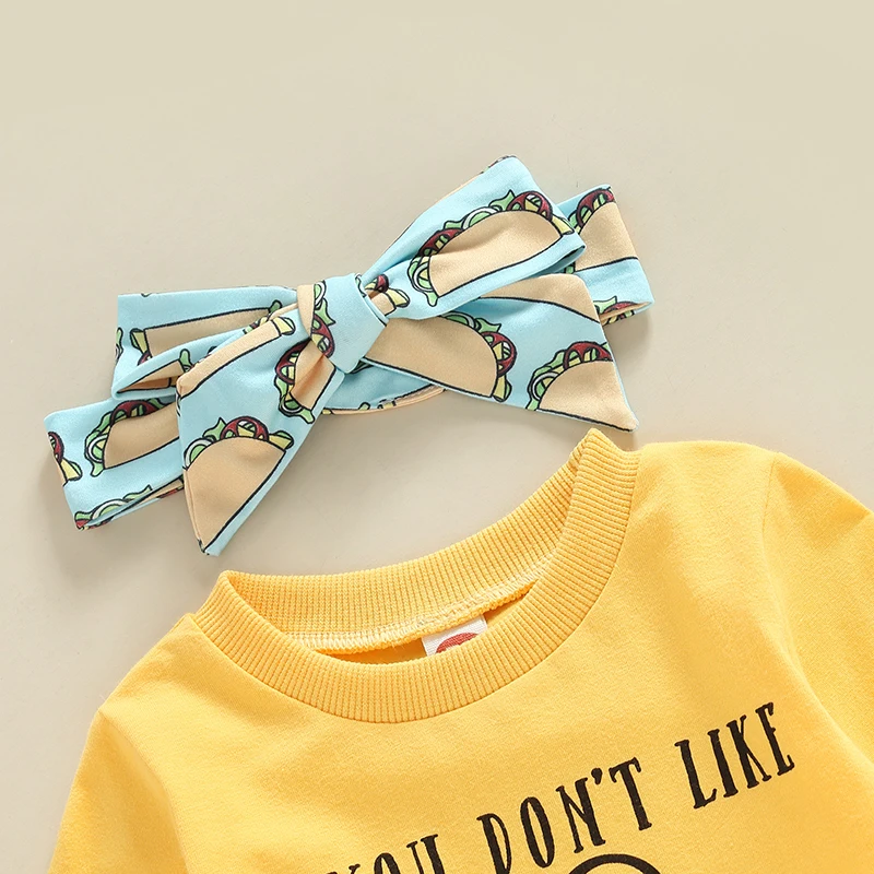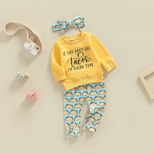 Toddler Baby Girls Clothes Set Letter Print Long Sleeves T-shirt Tops and Casual Taco Printed Pants Headband