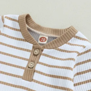 Baby Boy 2Pcs Fall Outfits Long Sleeve Striped Print Romper + Pants Set Infant Warm Clothes