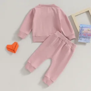 Newborn Pants Set Baby Girls Casual Letter Print Sweatshirt and Drawstring Pants Outfits Infant Pants Suits