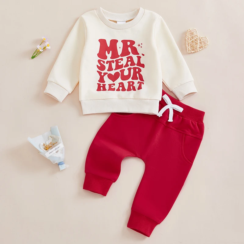 Baby Boy Valentines Outfit Letter Print Long Sleeve Sweatshirt and Elastic Pants 2 Piece Clothes for Toddler