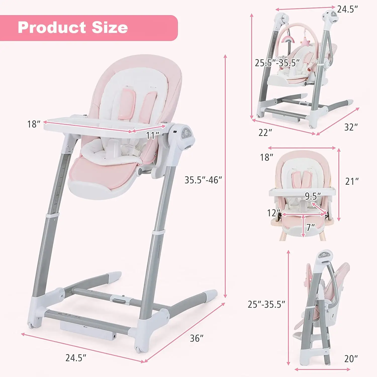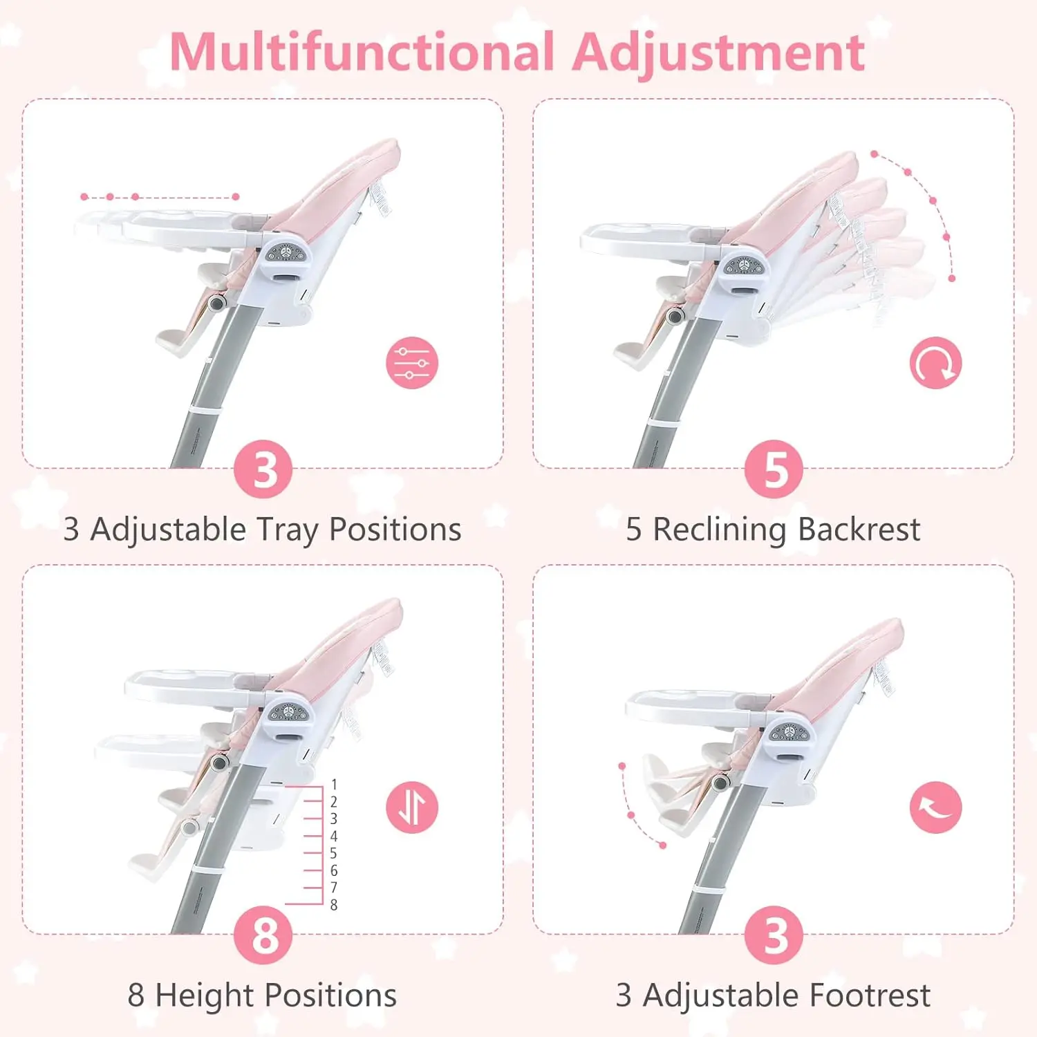 Adjustable High Chair: With 8 Seat Heights, You Can Change The Height Position Of The Baby Feeding Chair To Accommodate Different Height Sofas Or Tables. 5 Backrest Adjustable Positions Is Ideal For Baby To Eat, Or Diaper Change. With 3 Positions, The Footstool Adjustment To Meet Baby’S Postures.