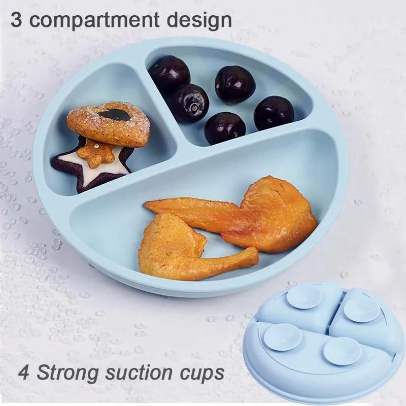 **Self feeding – Our unique silicone clip is perfect for children who are learning to self feed; The suction base ensures that it remains in place; Perfect for use on high chair trays or tables.