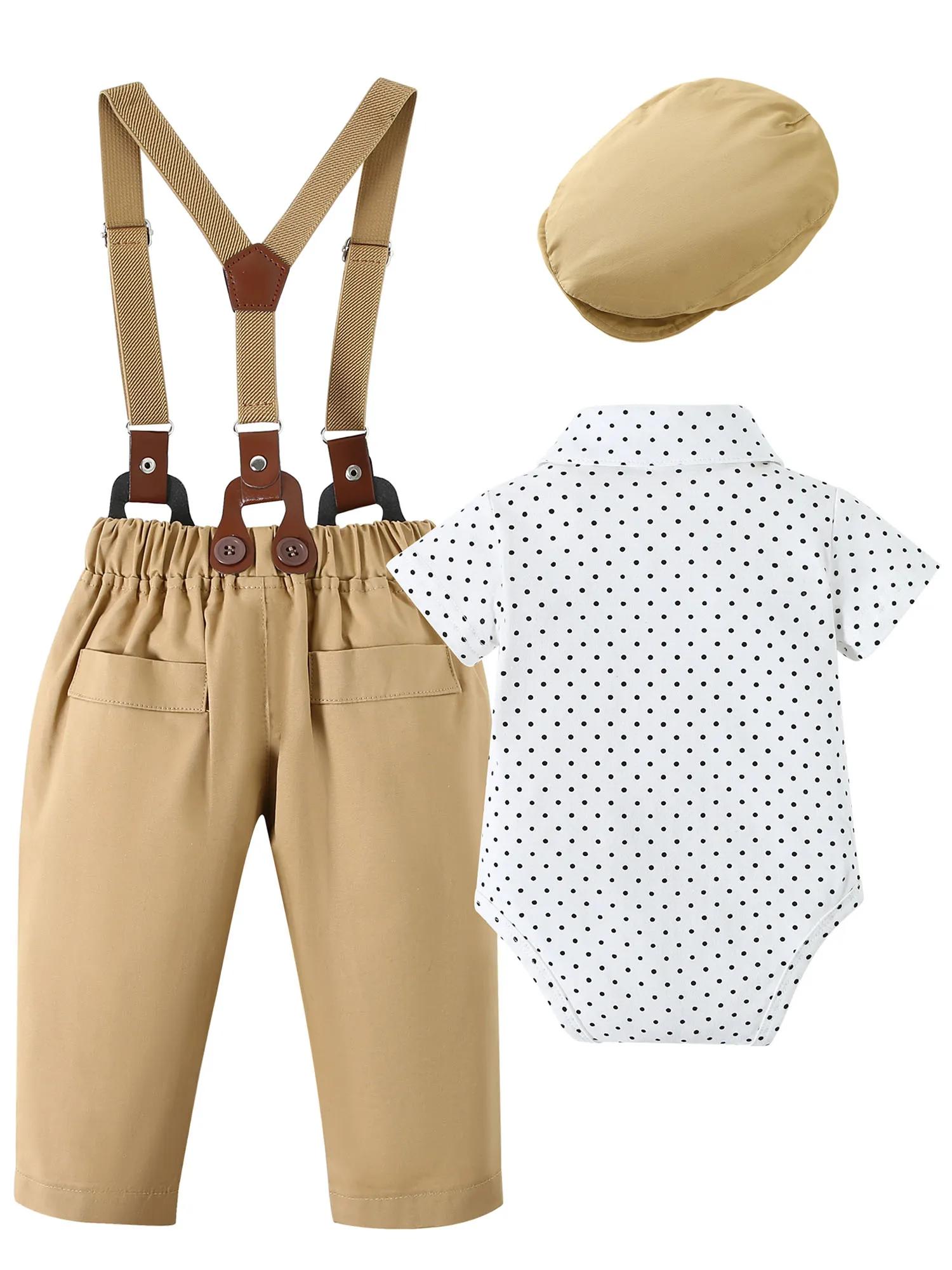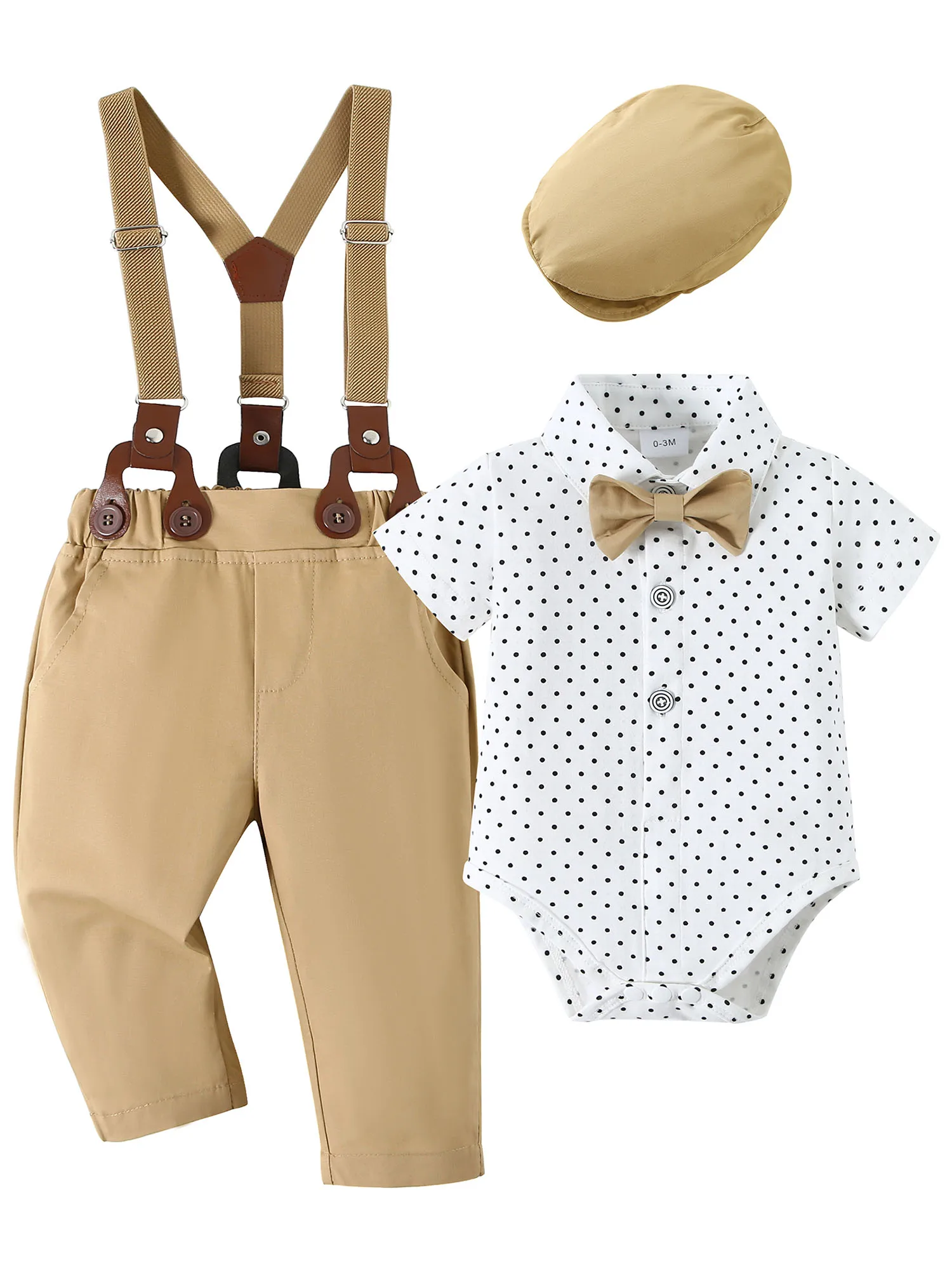 Occasions: Tuxedo designed suitable for baptism, pageant, party, wedding, church, cocktail party or birthday. Adorable beret with bow tie design, look more gentleman and fashion.