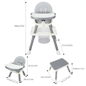 Enhanced Safety Features: The high chair features a sophisticated triangular frame that provides unparalleled stability, ensuring peace of mind and preventing tip-overs. Anti-slip mats prevent slipping and protect the floor, making every moment safe.