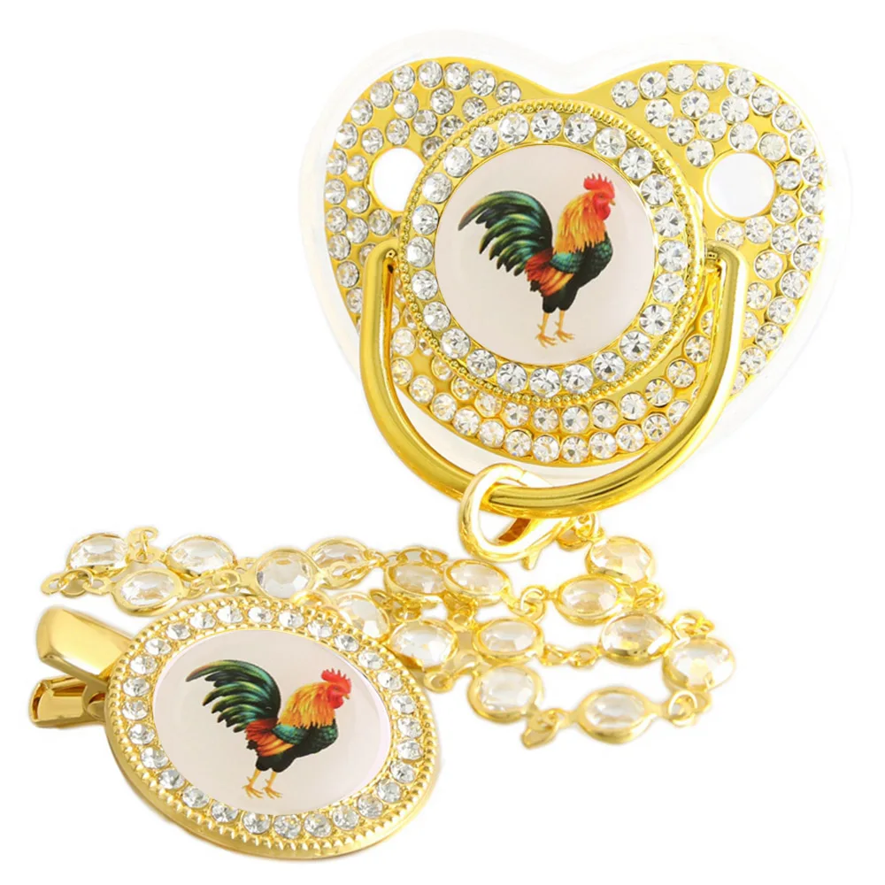 Bling Rooster Pacifier With Gem Luxury Weaning Pacifier Baby Nipple With Chain Clip Newborn Prince Baby Dummy Soother