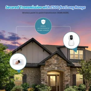 📸【Rotatable Antenna and Camera】Caxilysh handheld baby monitor is equipped with a rotatable antenna and no wifi, which makes the signal stronger and more secure for point-to-point wireless connection. Generally under stable conditions, the surveillance range of the baby monitor camera is over 2500 feet. The baby camera also comes with an additional wall mount, which is also very easy to install, and can be hung and lifted. The baby camera swivels 90° vertically and 360° horizontally, so no corner of the room is left untouched.