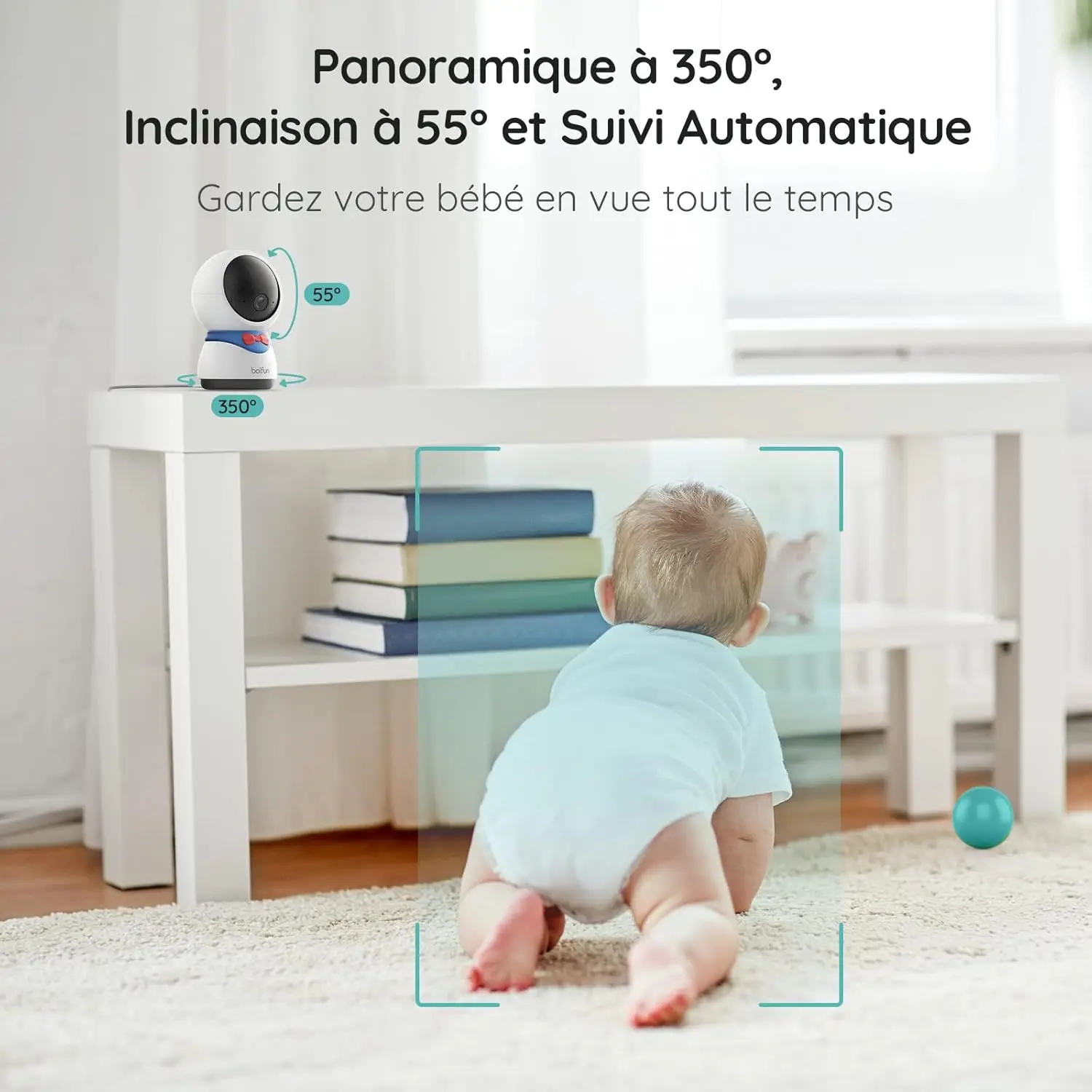 【350° Rotation & 55° Tilt & Automatic Tracking】 The rotating camera of the video baby monitor will automatically track the object as soon as movement is detected, alerting you to dangerous movements (such as escaping from the crib), constantly monitoring your baby's every movement.