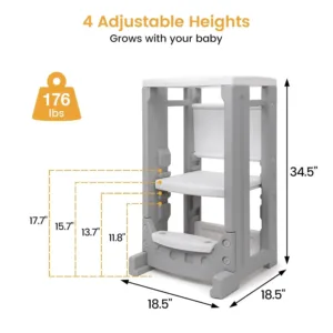4 Adjustable Heights: Adjusts To Four Heights 11.8″”, 13.7″”, 15.7″” & 17.7″” To Keep The Toddler Stool At The Perfect Height For Your Growing Child.